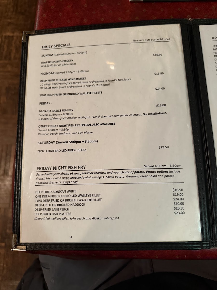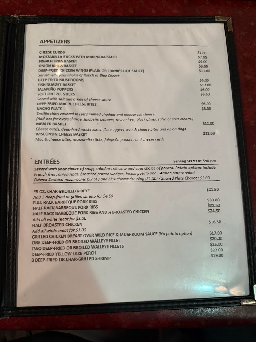 The Sportsmen's Chalet menu offers a straightforward selection of hearty, comforting dishes that perfectly suit its relaxed and inviting bar setting. The focus is on fresh, well-prepared fish fry options, including local favorites like lake perch, walleye, and haddock, served with thoughtfully crafted sides that complement the casual Northwoods atmosphere.